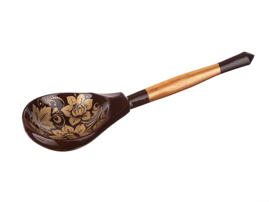 LHL7101 Деревянная ложка полубаская, роспись "Золото", Хохлома
