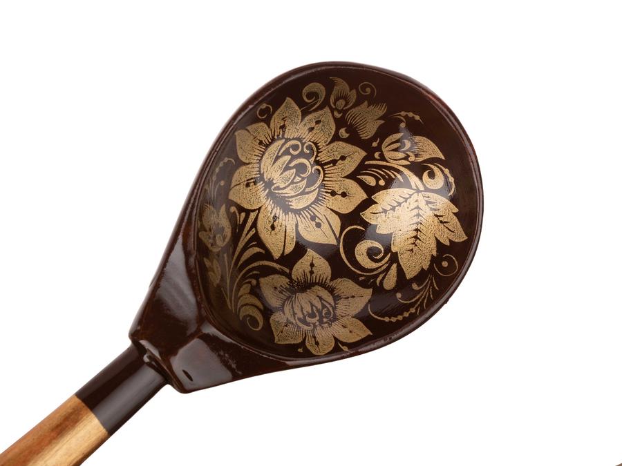 Характеристики Ложка LHL7101 Деревянная ложка полубаская, роспись Золото, Хохлома