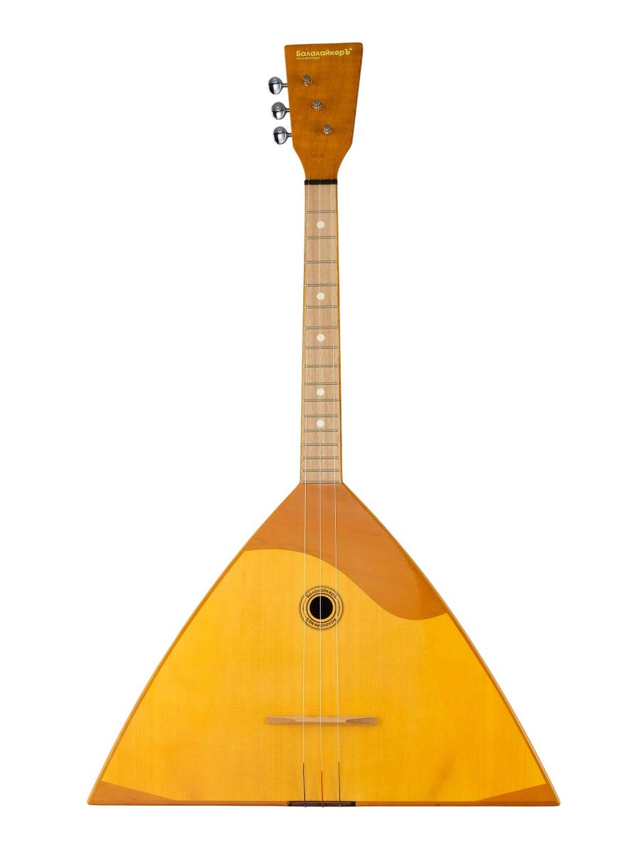 Балалайка традиционная продвинутая. Специальная модель балалаек с пятиклёпочным кузовом. Создана для ценителей аутентичного стиля игры. Узнаваемый образ инструмента складывается из среднеразмерного корпуса, яркого открытого звучания и характерного исторического декора. БалалайкерЪ Спутник Акустик наследует традиционные черты старых инструментов и при этом отвечает акустическим требованиям настоящего времени. Инструмент создан под впечатлением от пятиклёпочных балалаек артельного производства первой половины XX века. Особенностями стилистики этих инструментов стал гриф с ореховой накладкой и врезной фартук на деке.