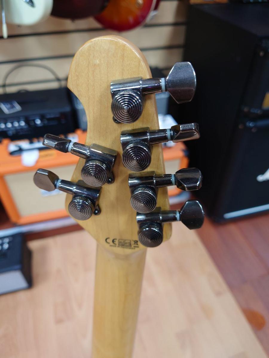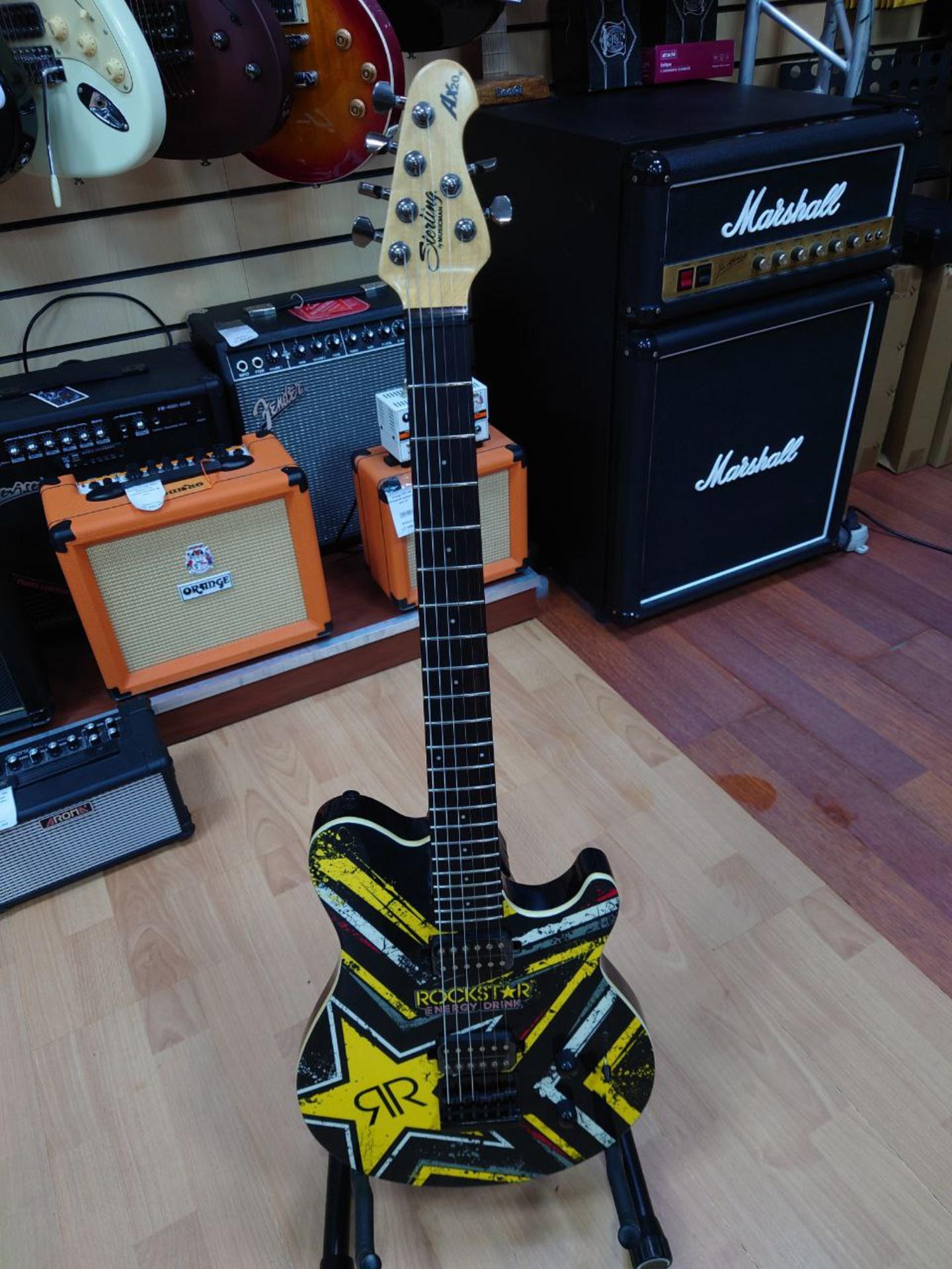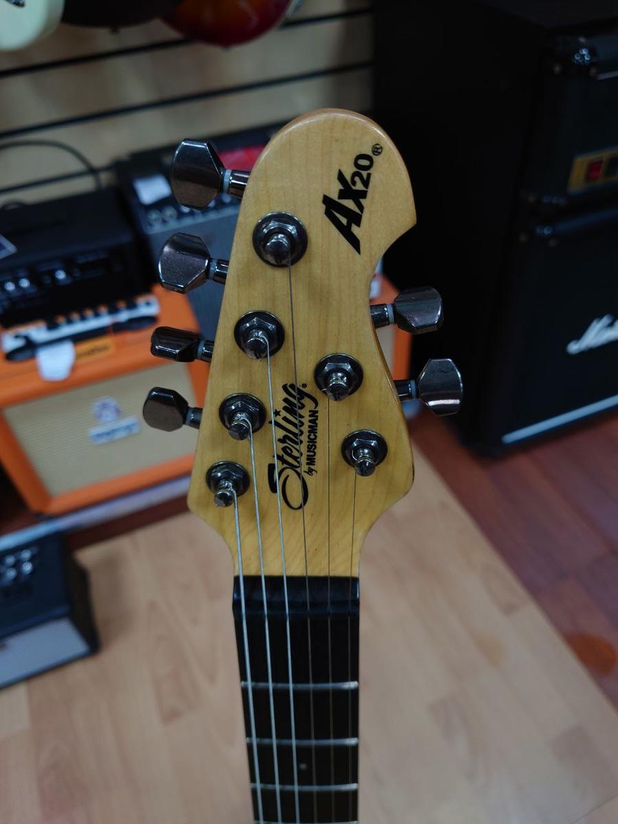 Sterling AX20 Rockstar limited. Электрогитара. Это классическая рок-гитара, дизайн которой сделан на основе легендарной гитары Eddie Van Halen. Этой гитаре подвластно всё: от блюза до тяжёлого рока. Удобной особенностью электрогитары является доступ к анкеру со стороны грифового датчика.