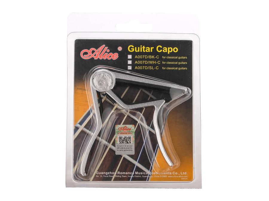 Alice A007D/SL-C Каподастр для классической гитары, металлический на пружине, быстрозажимной, в блистере.