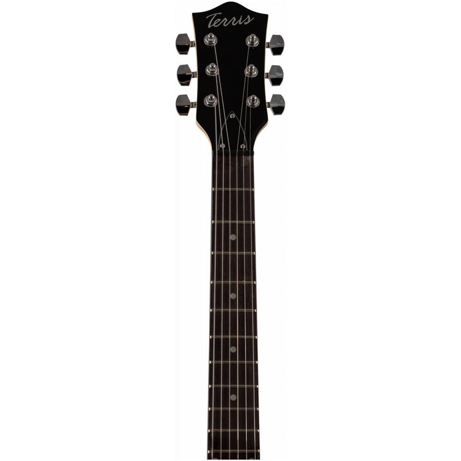 TERRIS TLP-039 BK - электрогитара классической формы Les Paul. Традиционно гитары с формой Les Paul считаются самыми универсальными инструментами. Начиная от классического блюза и заканчивая тяжелым роком - в любом стиле гитарной музыки эта гитара найдет свое применение. Корпус TERRIS TLP-039 BK выполнен из липы, которая обладает мягким и певучим звучанием, хорошо сбалансированным по всему доступному диапазону частот. Кленовый гриф с креплением на болтах усиливает атаку и отлично фокусирует энергию на корпусе, добавляя звучанию инструмента яркости и прозрачности, накладка выполнена из практичного техновуда