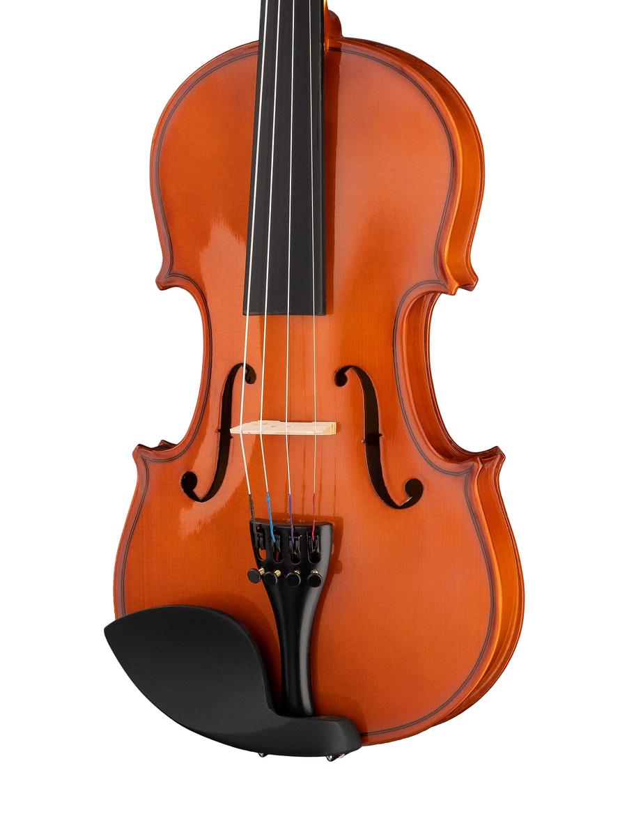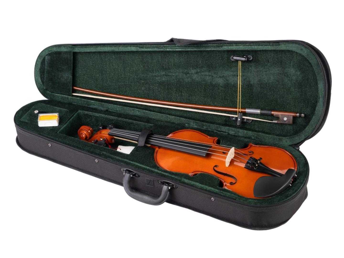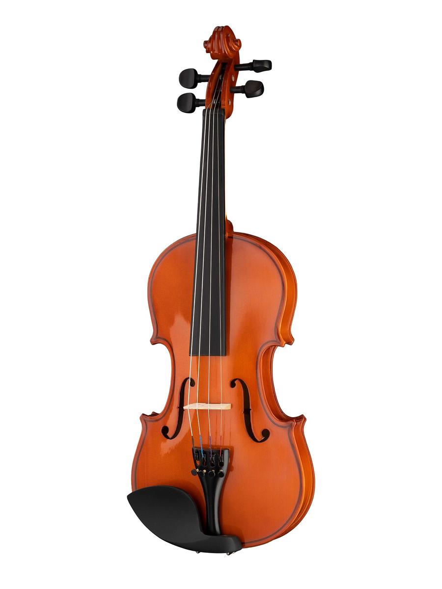 Fleet FLT-VP1/2 Скрипка ученическая в комплекте, верхняя и нижняя деки из ламината, гриф из клена, накладка грифа - ююба, смычок, канифоль и жесткий футляр в комплекте.