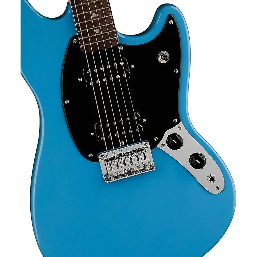 Squier Sonic Mustang HH имеет великолепный корпус из тополя в синем цвете (California Blue) и покрыт лаковым полиуретаном, что придает инструменту особую изящность.