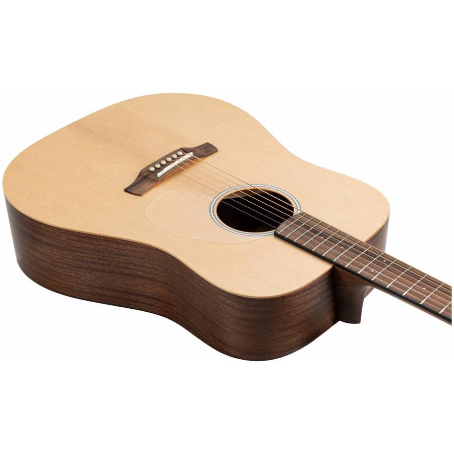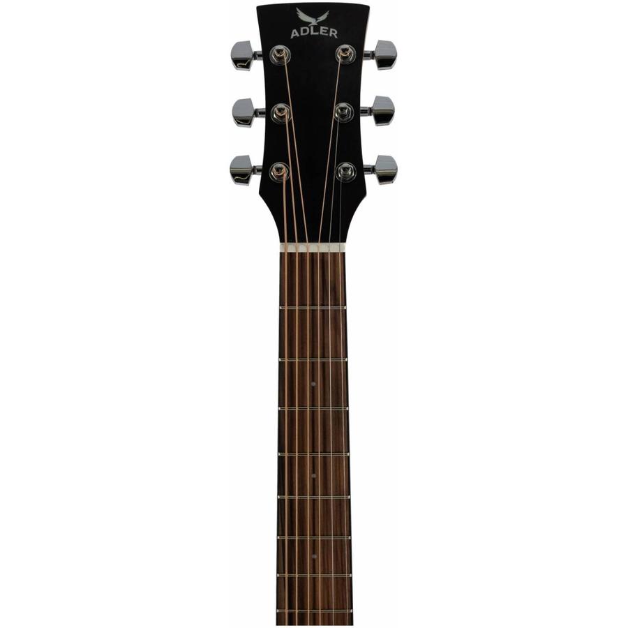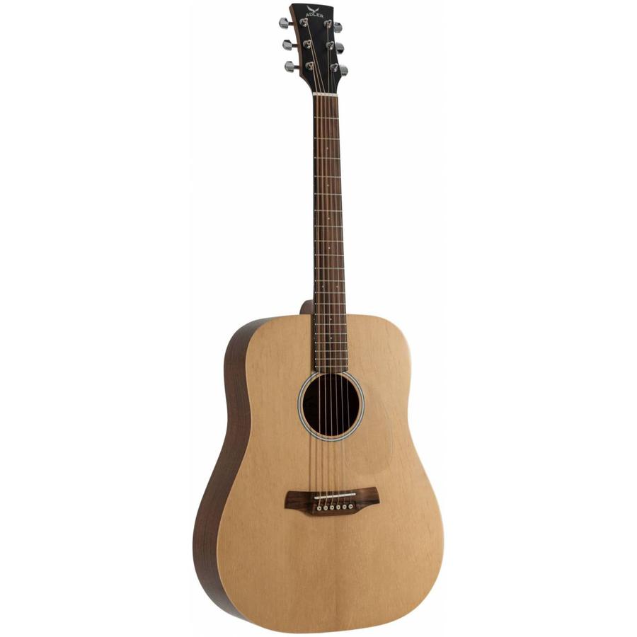ADLER D10-SM - акустическая гитара. Дредноут с верхней декой из массива ели. Одна из недорогих и доступных гитар среднего уровня, которая будет со временем становится лучше, так как массив со временем разыгрывается. Adler - это отличный порог входа, с которого можно начать играть на гитаре и получать удовольствие от процесса и звука даже когда гитарист играет давно.