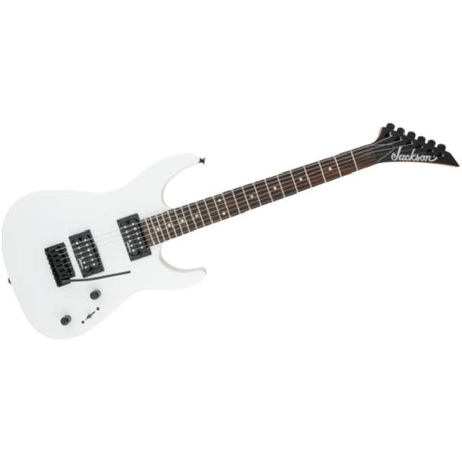 JACKSON JS11 Dinky WHT - шестиструнная электрогитара, модель из бюджетной линейки JS Series. Это отличный вариант для молодых музыкантов получить классический джексоновский звук и внешний вид по демократичной цене. Корпус Dinky JS11 выполнен из древесины тополя. Гриф – из клёна, привинченный, с графитовым усилением, обеспечивающим максимальную стабильность. Отличительная черта представленной модели - накладка из амаранта переменного радиуса 12 дюймов, которая отлично подходит как для игры риффов, так и для соло. На грифе 22 лада джамбо, инкрустированных перламутровыми точками. Голова грифа - Jackson® Pointed (шесть в ряд). Четкий, чистый звук инструмента, при этом достаточно плотный и мощный, формируют два хамбакера собственного производства Jackson® High-Output с керамическими магнитами. Настройка звука производится трехпозиционным переключателем, регуляторами громкости и тембра. Представленная гитара – элегантного белого цвета с контрастной черной головой грифа и черной фурнитурой.