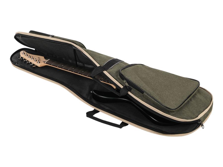 Lutner LEG-32 Чехол для электрогитары, утепленный, олива. Утеплитель: пена стенофон (полиэтилен высокого давления), толщина 10 мм. Оснащен лямками и ручкой для переноски. Имеет внешний карман для нот и аксессуаров. Светоотражающие полосы.