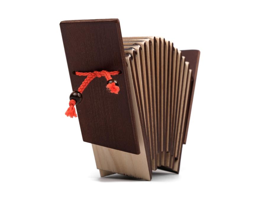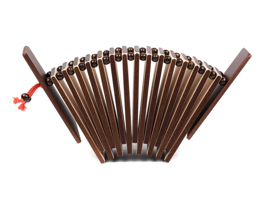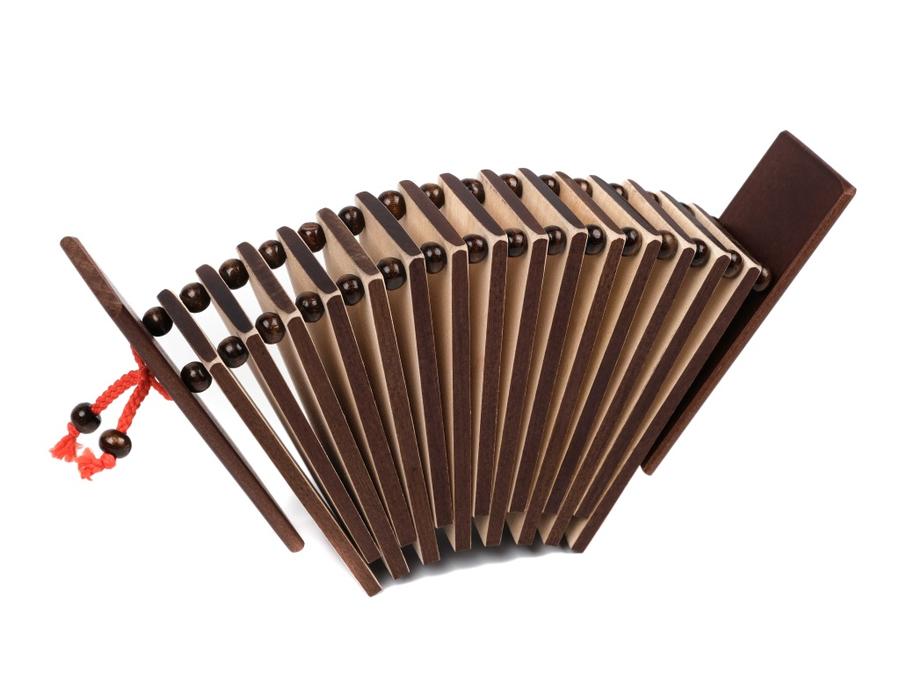 Мастерская Сереброва MS-T2-TR-03 Трещотка пластинчатая «малютка». Трещотка изготовлена из деревянных пластин, соединённых прочным полимерным шнуром. Между пластинами находятся специальные деревянные перемычки, которые определяют громкость и тембр инструмента. Играть на трещотке не сложно: нужно взять её обеими руками за крайние пластины, раскрыть и быстро сжать руки в исходное положение. Можно так же взять её обеими руками за крайние пластины, и поочерёдно передвигать руки вверх и вниз.