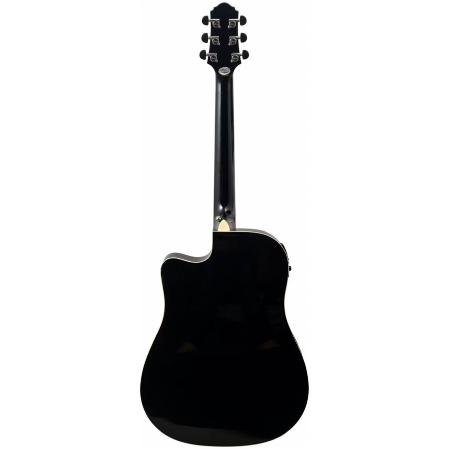 CRAFTER HD-250CE/BK - электроакустическая гитара с вырезом в черном цвете, которая подойдет начинающим музыкантам и обучающимся игре на инструменте. Форма корпуса «дредноут» – это, пожалуй, самая популярная форма акустических гитар. Разработанный компанией Martin в 20-х годах прошлого столетия, «дредноут» до сих пор считается стандартом для вестерн-гитар, который с успехом используется большинством производителей и огромным числом музыкантов, играющих в самых различных стилях. Эти корпуса имеют несколько больший размер, чем классические или оркестровые гитары, а звучание имеет явный акцент на низкие частоты.
