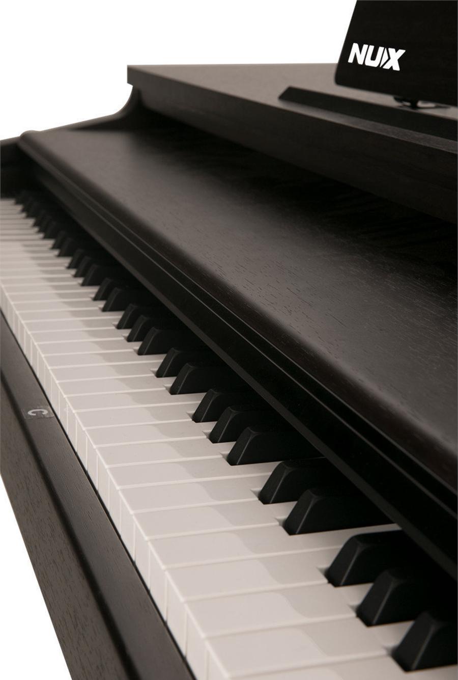 Nux Cherubb WK-520-BROWN Цифровое пианино на стойке с педалями, тёмно-коричневое. WK-520 - это лучшие сэмплы звучания рояля Steinway, в сочетании с новейшим процессором Dream 5708 и итальянской молоточковой клавиатурой на металлической раме. Проще говоря, WK-520 - это высококачественное цифровое пианино. Подключите свой телефон или планшет к пианино с помощью приложения и вы влюбитесь в новый способ обучения игре на инструменте с помощью ярких светодиодных индикаторов.